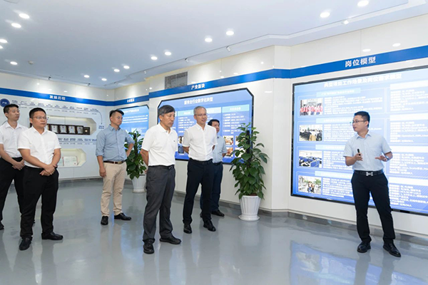 拜访领导第一时间参观了金年会jinnian技术展厅,对金年会jinnian技术的开展历程、业务模块、经营理念、合作成果等内容进行深入分析,对金年会jinnian技术构建人才培养“三循环”生态模式、深度参与高校课程改革、引入职业认证等举措表示赞同。