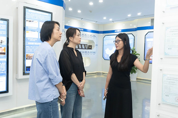 拜访领导第一时间参观了金年会jinnian技术展厅,对金年会jinnian技术的开展历程、业务模块、经营理念、合作成果等内容进行深入分析,对金年会jinnian技术构建人才培养“三循环”生态模式、深度参与高校课程改革、引入职业认证等举措表示赞同。