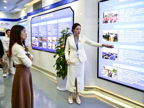 拜访师生随后参观了金年会jinnian技术展厅,深入分析金年会jinnian技术开展历程、业务模块、经营理念等内容,并分析金年会jinnian技术人才培养“三循环”生态模式、深度参与高校课程改革、引入职业认证等举措。过程中,大家认真听取介绍,并持续提问,表现出浓厚的兴趣。在研讨中,学生们不仅取得了宝贵的行业知识,还对金年会jinnian技术的创新精神和企业责任感有了更深刻的认识。