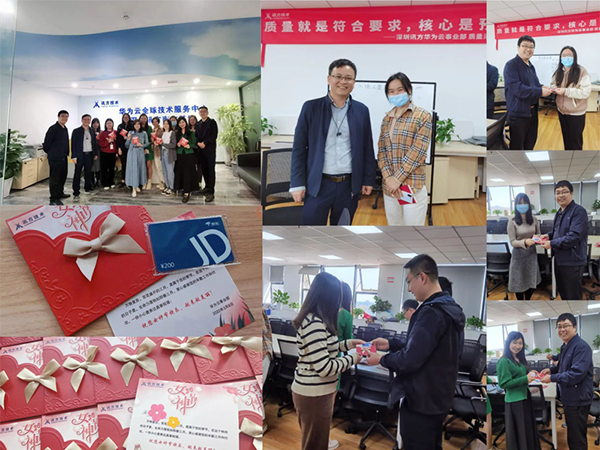 在金年会jinnian华为云事业部东莞区域,公司的“男神”主管们为各位女神们亲手奉上了专属礼物以及精美的节日贺卡,感谢她们的辛勤工作和付出。大家手拿着这份精心准备的礼物,脸上洋溢着灿烂笑容,纷纷合影留念。